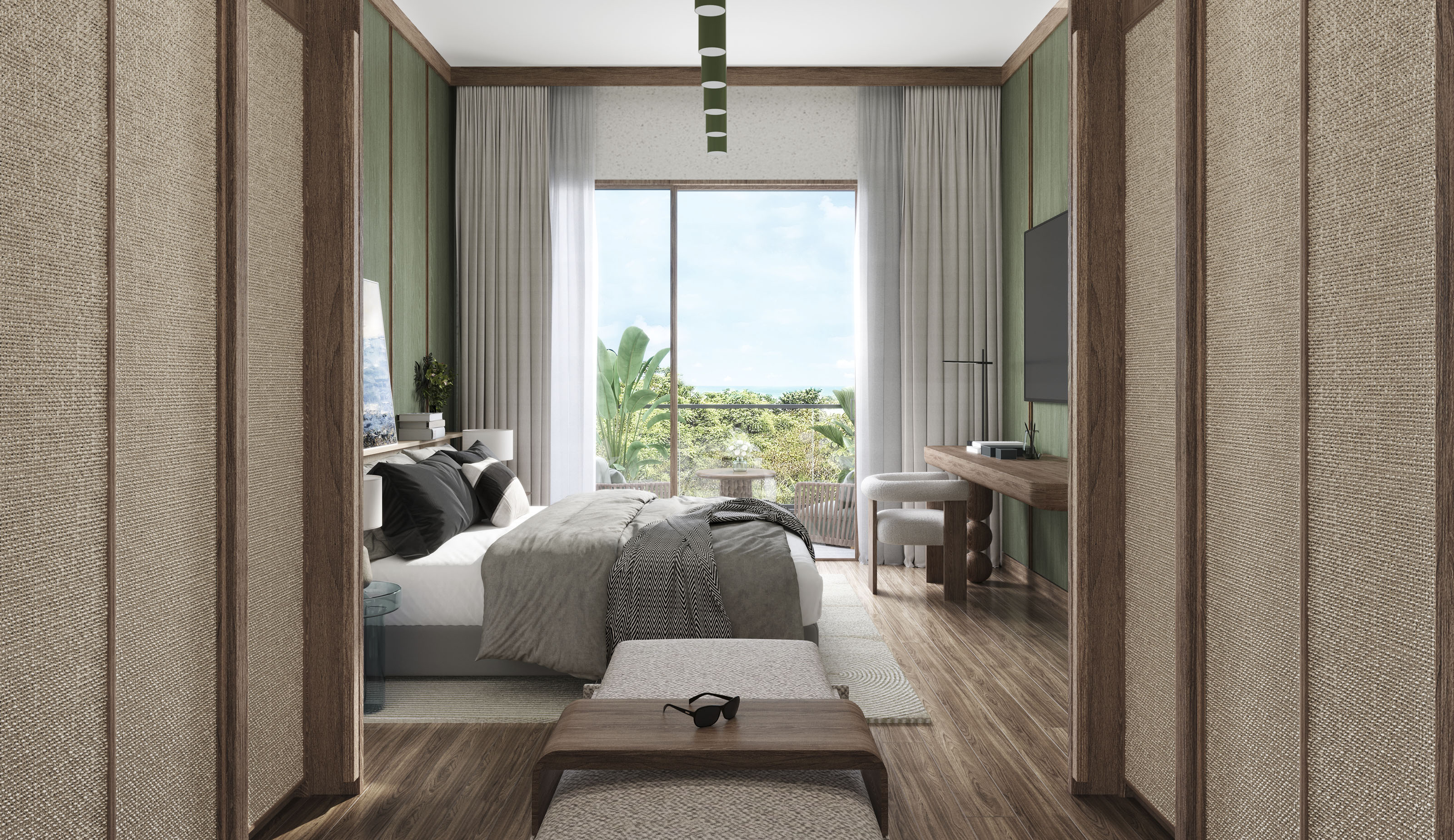 Welcome to Layan Verde, an exceptional residential development set amidst Thailand’s lush, tropical landscapes. Rooted in a refined design approach, these residences blend the warmth of earthy ochres—evoking the gentle tones of wood and soil—with vibrant greens drawn from the surrounding environment. This thoughtful color palette not only draws the outdoors in, but also fosters a sense of calm and connection, celebrating the harmony between nature and modern living.