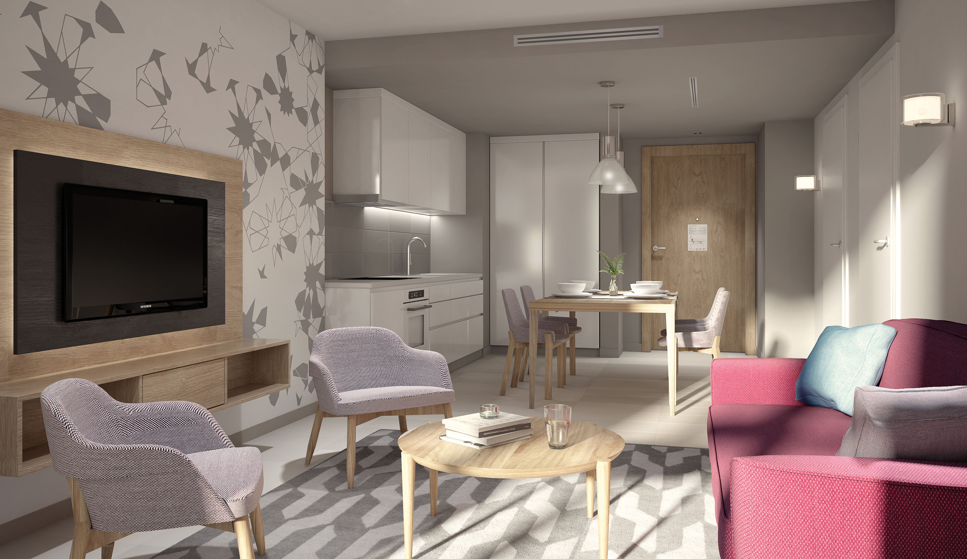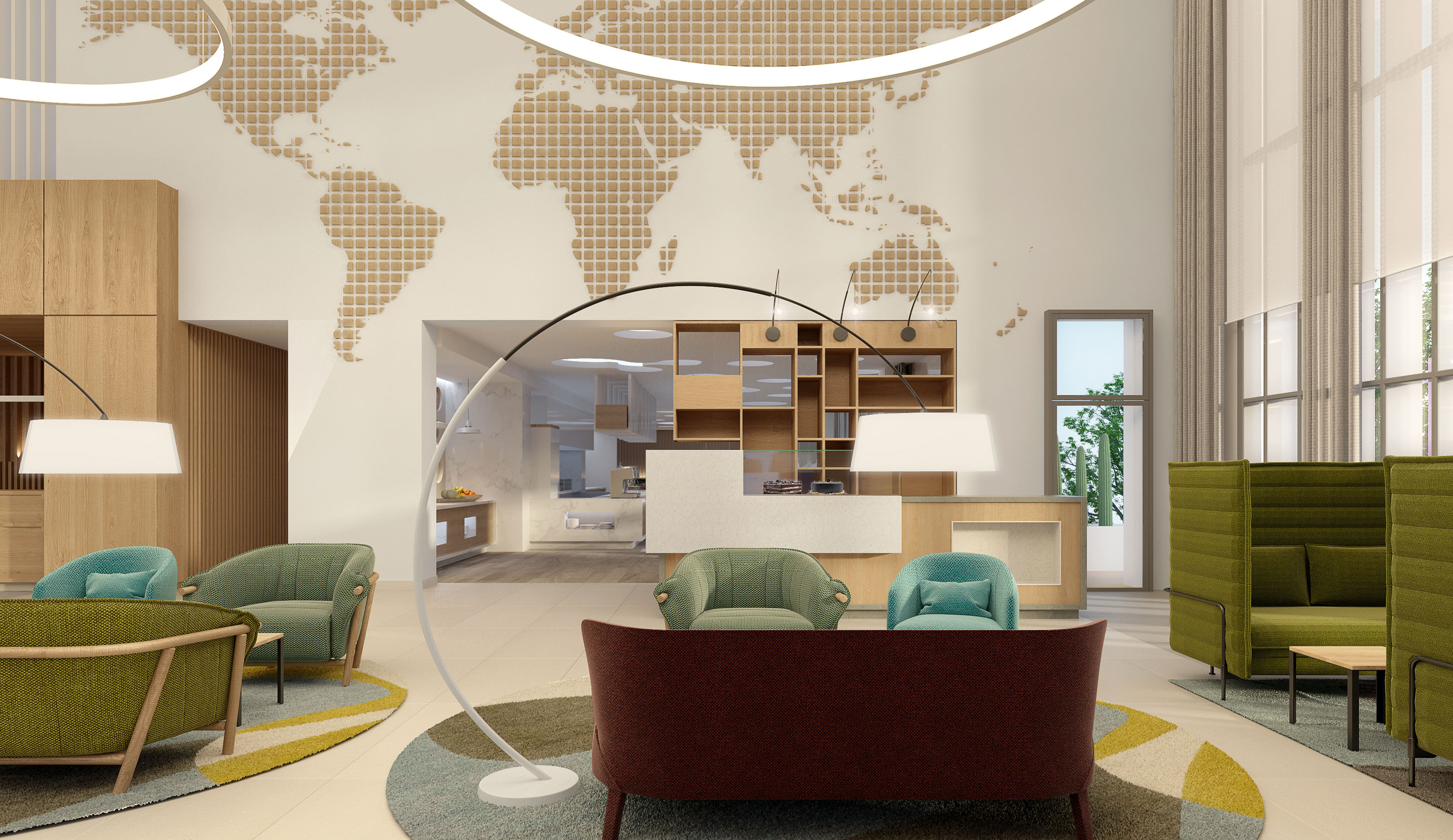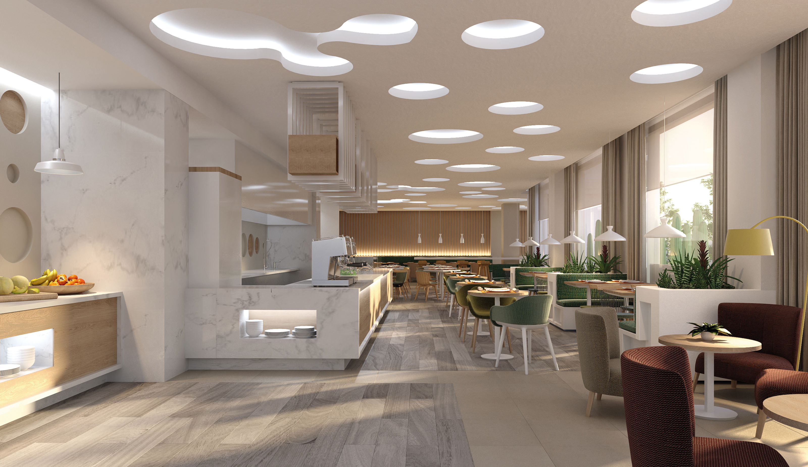 Based on the Park Inn design code which focuses in delivering a modern look and a flexible and friendly atmosphere, the hotel caters a warm and casual service orientated towards both young and business travellers and tourists. The interior design follows the brand’s style yet strongly highlights one key element which is common to all spaces: the color. The program includes all FoH areas: lobby, public toilets, ADD, ballroom, bridal suite, fitness and swimming pool facilities, kids club, prayer and meeting Rooms 102 guest rooms units and 99 apartments units.