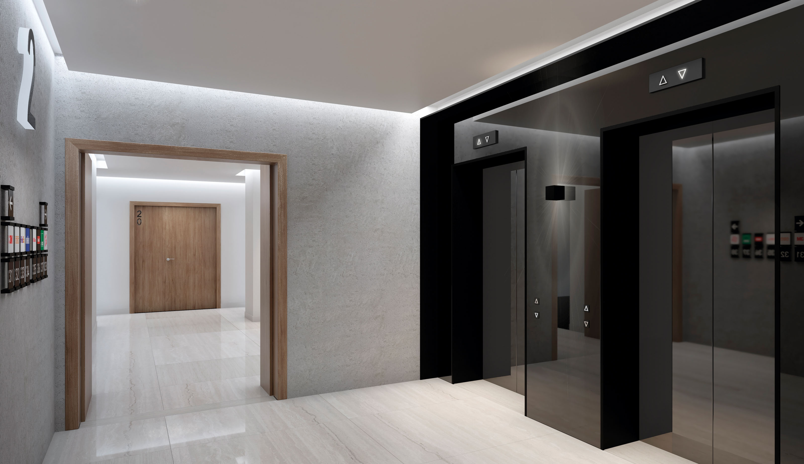 The interior design concept follows the client’s view of delivering work environments in the city of Dubai which foster innovative ecosystems. Focusing on the public areas of the Group’s office building, the proposed design achieves a visual coherence by integrating natural materials, colors and lighting in a modern and contemporary language which reflect the company’s ethos and corporate identity. The program includes the design of the reception area, access control and public toilets.