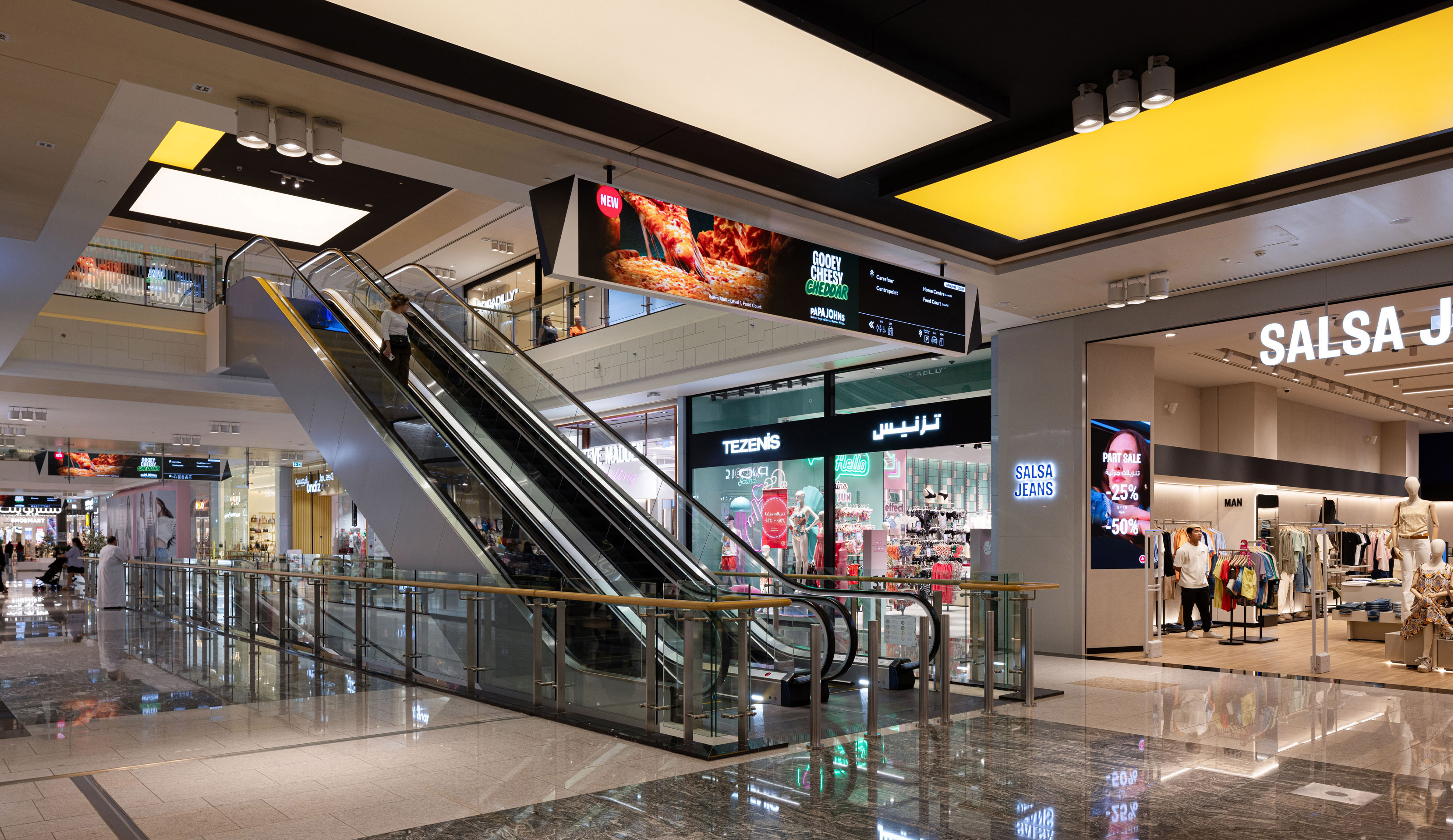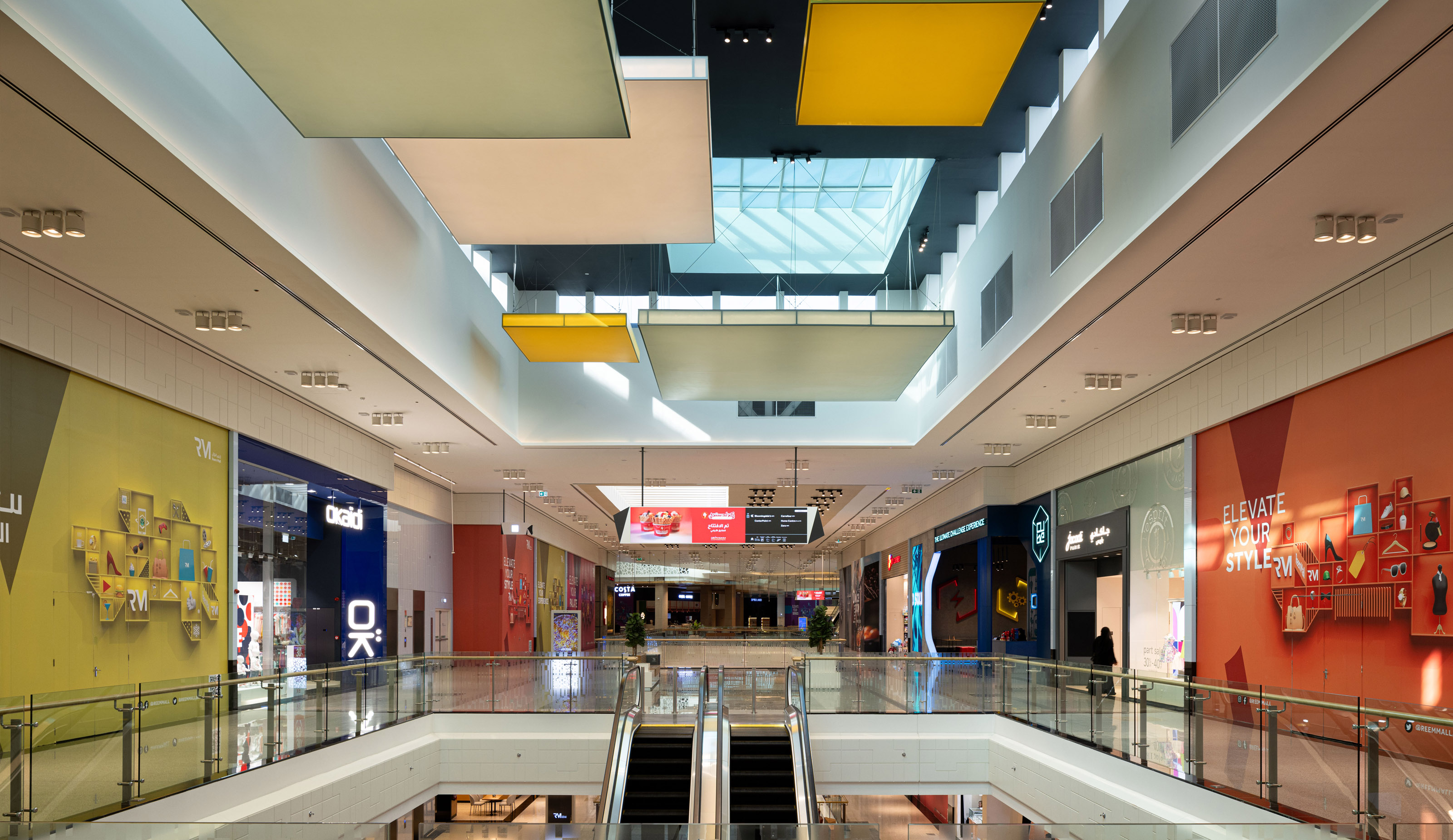Located on Reem Island with fantastic views to the marina, Reem Mall is the shopping, entertainment and food destination for the high-end residential developments of Hazaa bin Zayed Street and Al Reem Island. The interior design concept draws inspiration from elements of the local landscape like salt and the salt mangrove, reflected in materials like glass and metal, and the patterns and organic shapes which characterize this salt-tolerant shrub. The program of the mall includes the interior design development for all public spaces inside the mall: circulation spaces, food courts, prayer room, public toilets and administration offices.