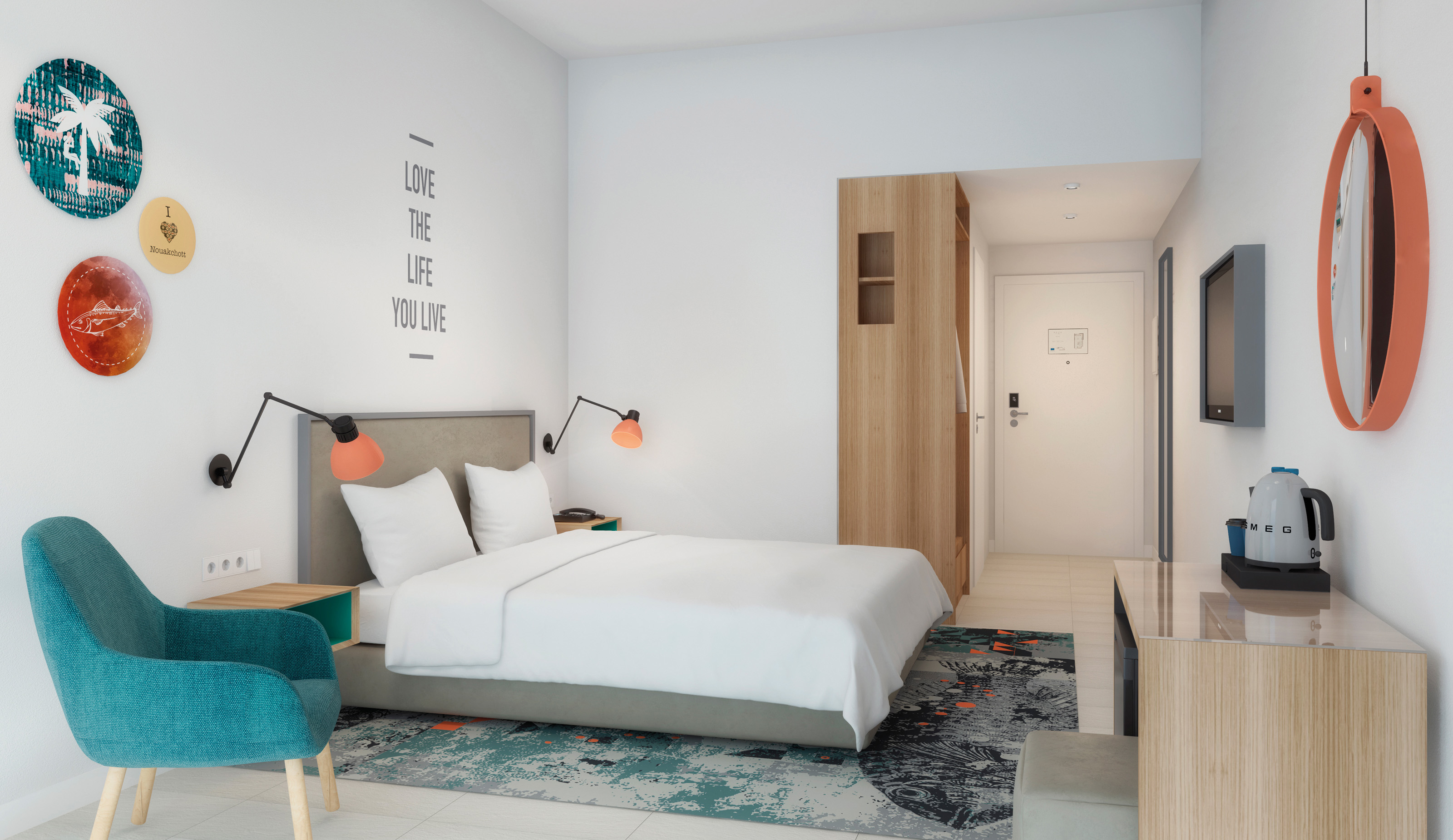 ROVE Hotels is a global lifestyle brand that brings smart, fuss-free hospitality to the new generation of the modern traveler and nomad who believes in exploring without borders. The design is defined like modern, cosmopolitan, cultural and contemporary. Rove Mauritania is intended to be a friendly hotel with a relaxed urban atmosphere blending with an interesting cultural and local art scene.