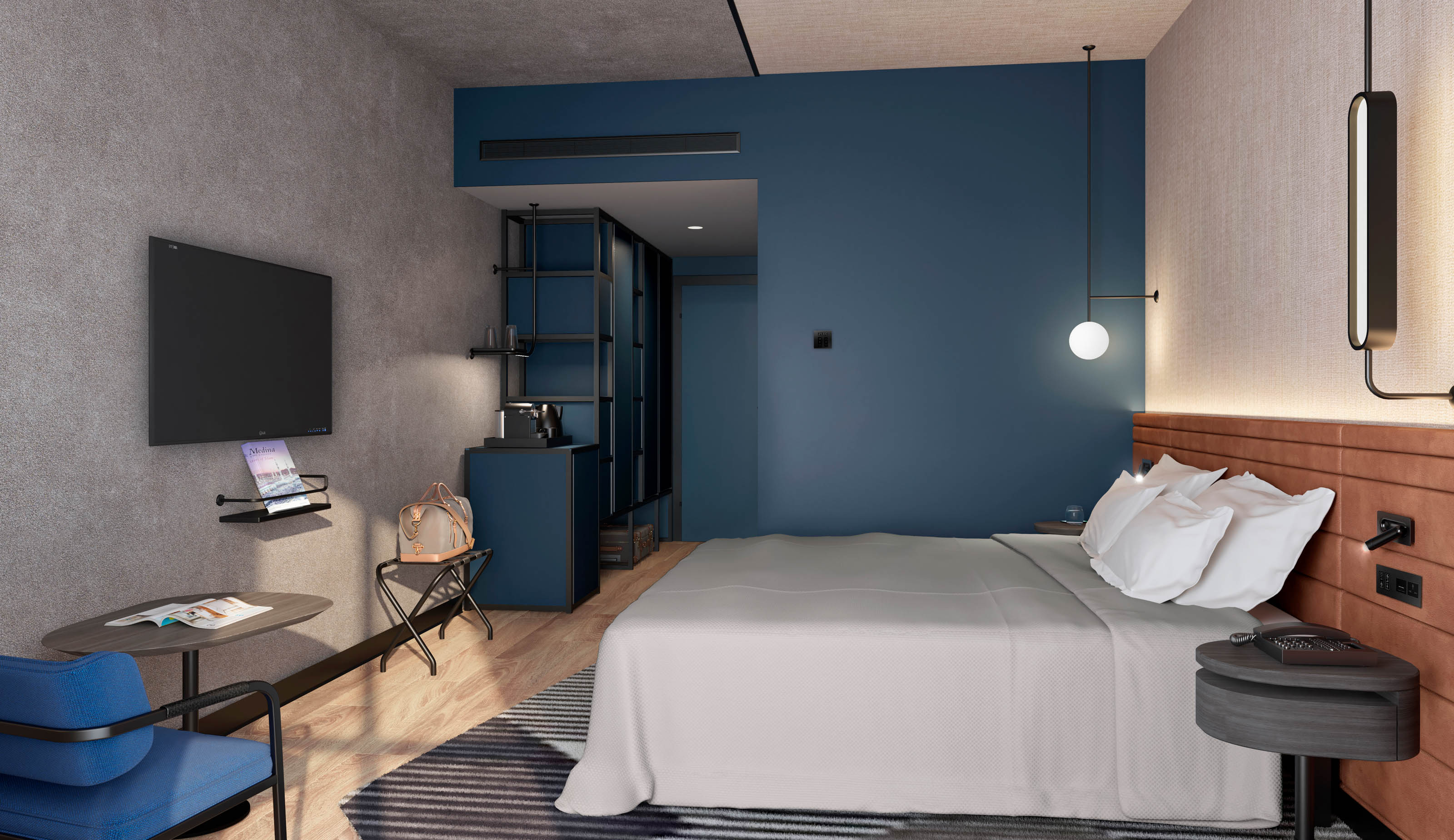 The design code focuses on providing a modern look and stylish atmosphere without sacrificing warmth. It strongly highlights a key element that is common to all spaces: color. The combination of the selected palette used in all rooms, apartments and public areas serves to achieve a dynamic design and a calm environment.