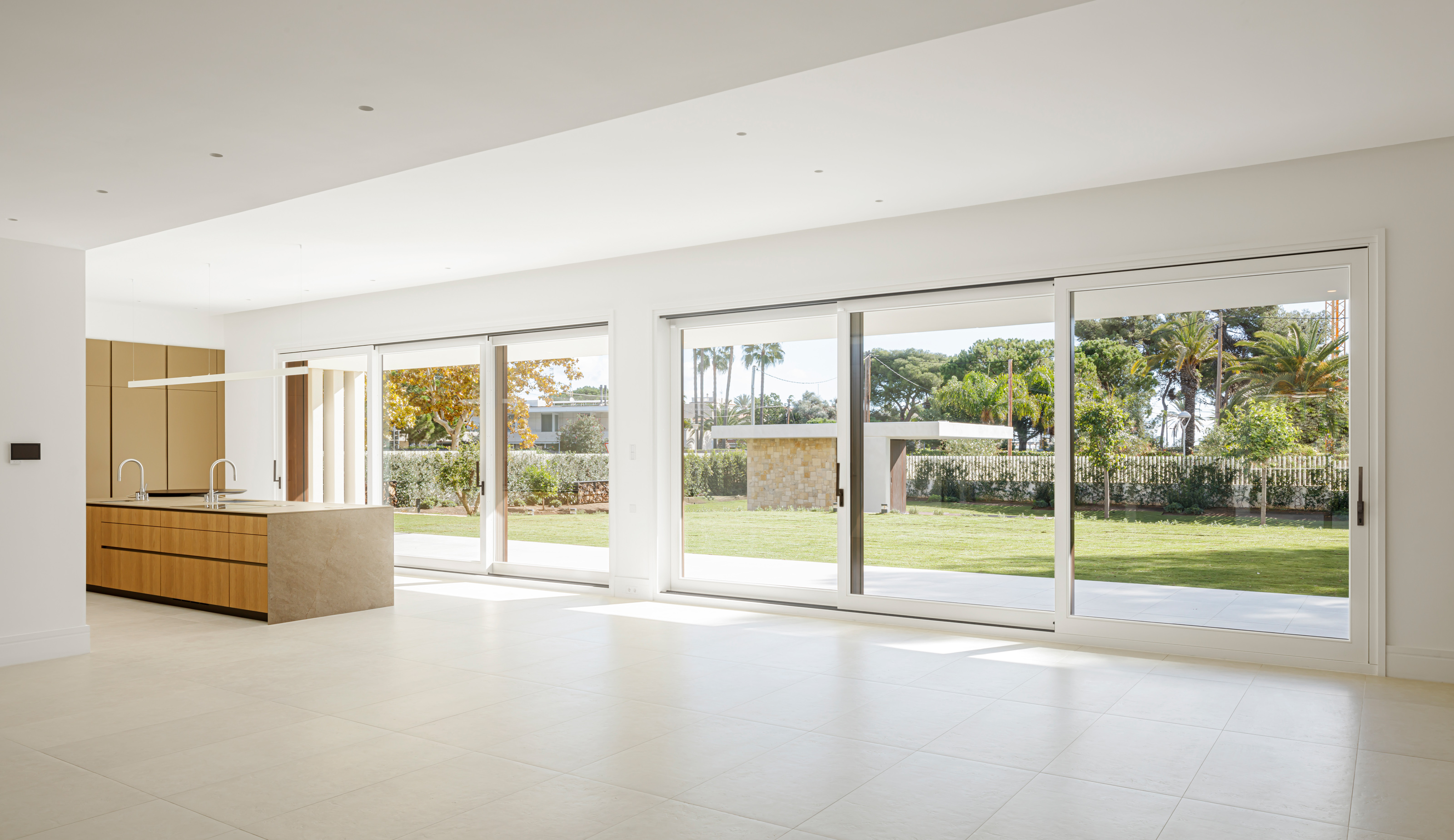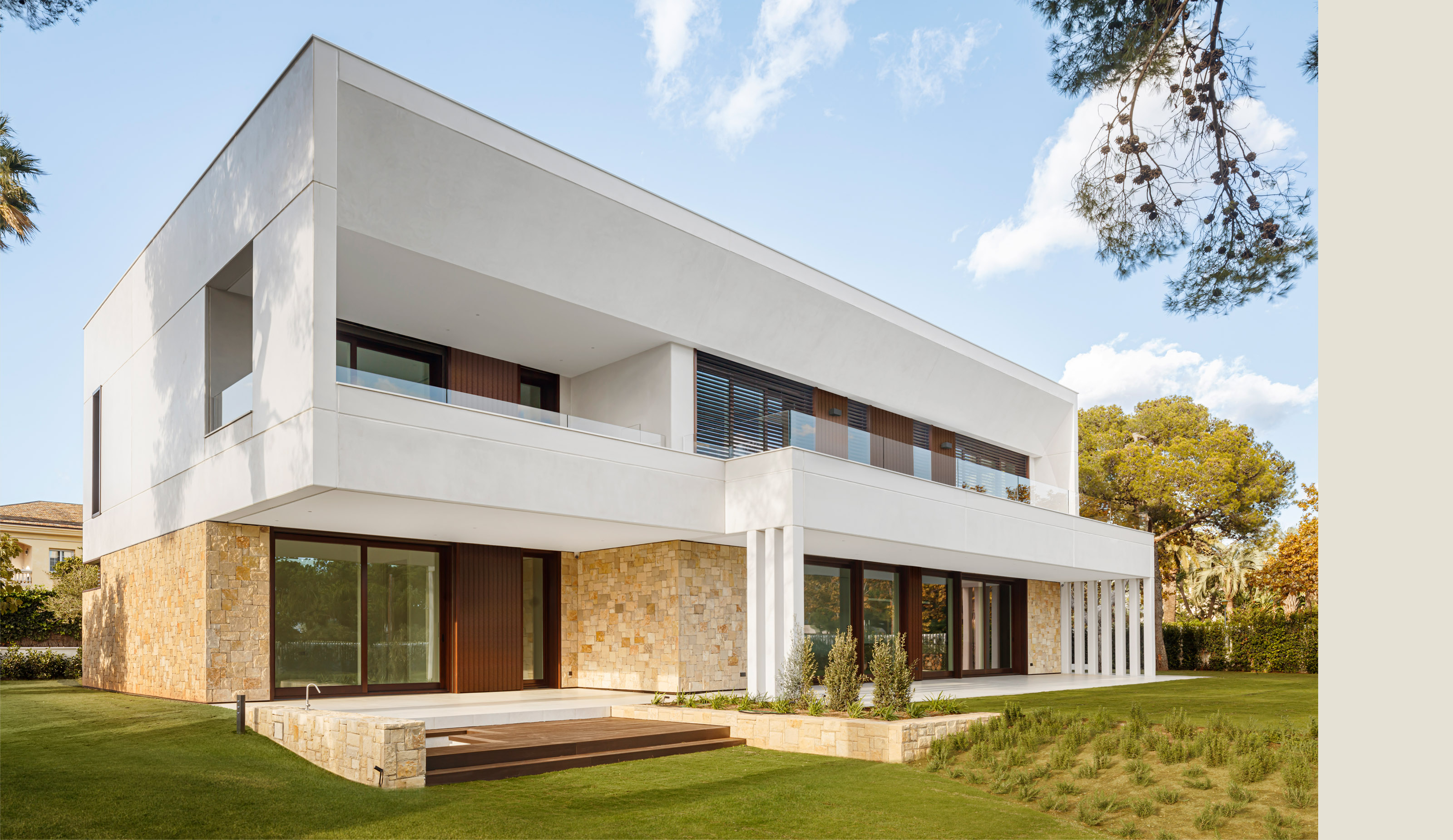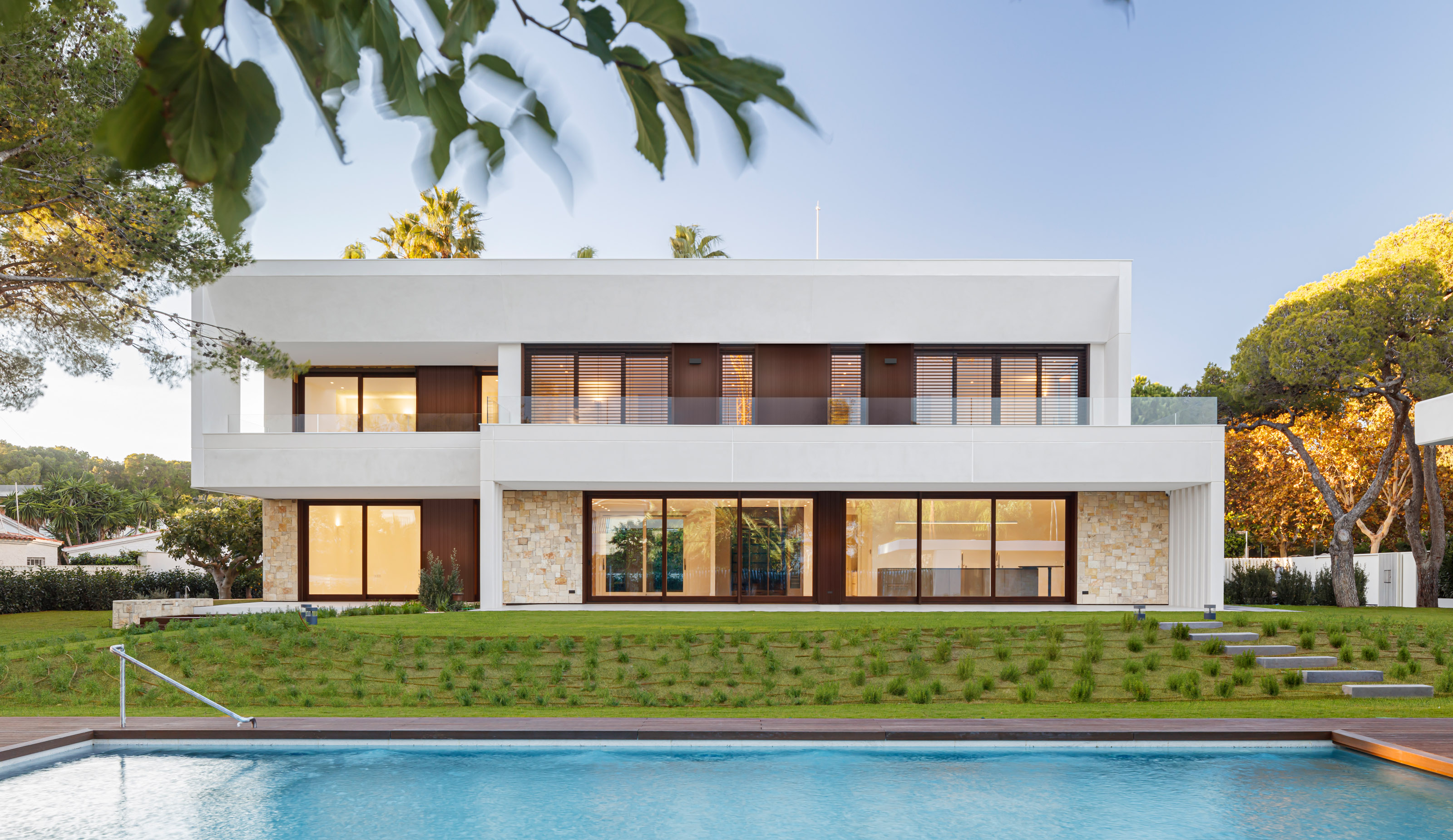 Located a few meters from the seafront, in the town of Sitges, in the exceptional environment of the Garraf coast, stands this contemporary single-family home of 729.29m2 built structured on ground floor, first floor, and a walkable roof offering views of the Mediterranean. The 2449m2 plot surrounding the house is enveloped in its own landscape, enjoying the tranquility of the Vinyet neighborhood where it is located.