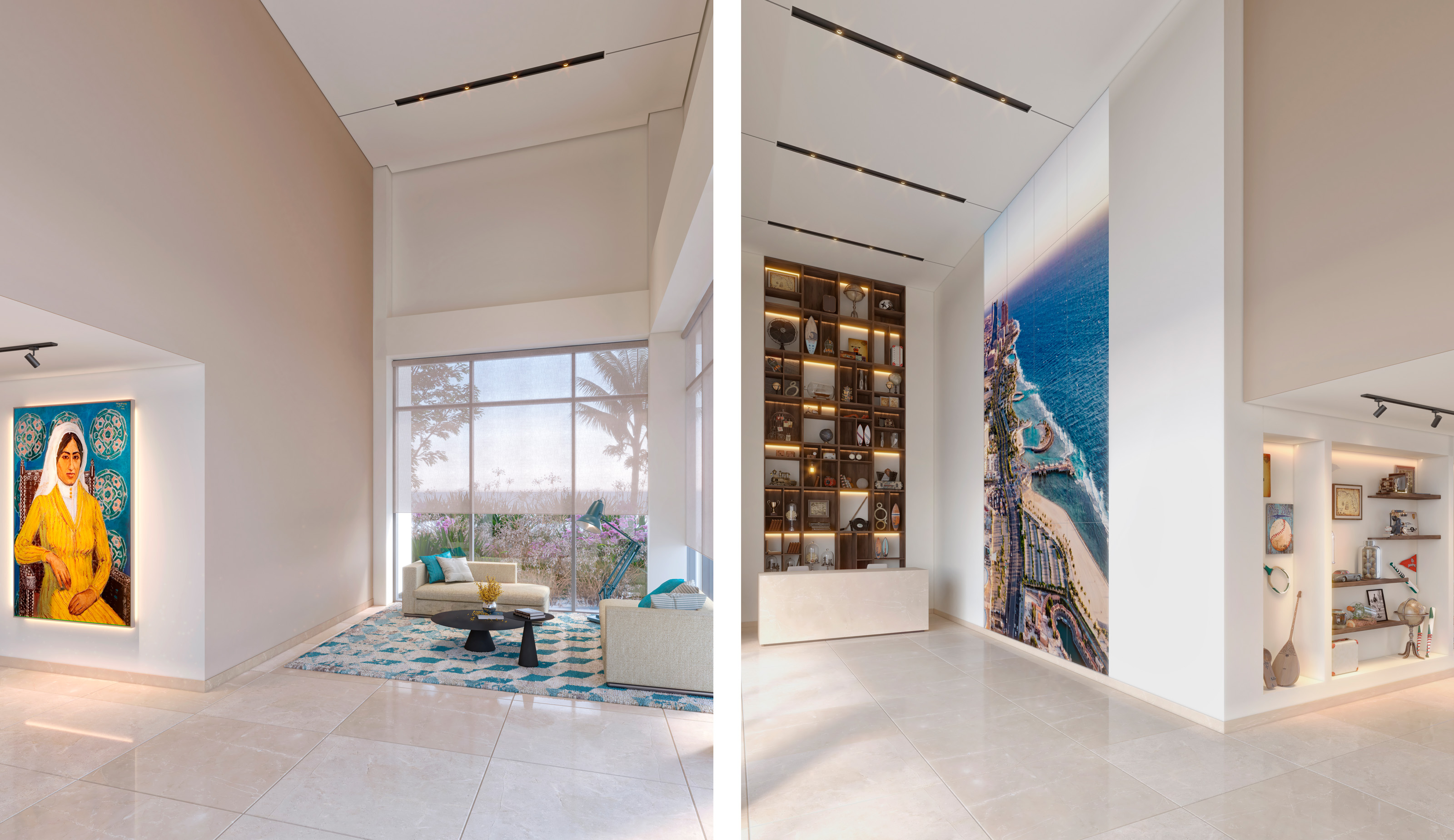 Inspired by Jeddah’s craftsmanship, accessories add life to the space with blue touches reminiscent of the Red Sea. Linear lights play a key role in creating a modern ambiance. Furnishings with exhibits draw inspiration from the city’s ornate iron gates, connecting the past with the contemporary world. The design approach embraces Jeddah’s heritage, using sand tones as a backdrop for vibrant handcrafted elements and touches of blue, creating a harmonious fusion of modernity and tradition. The showroom invites visitors on a journey through time and style.