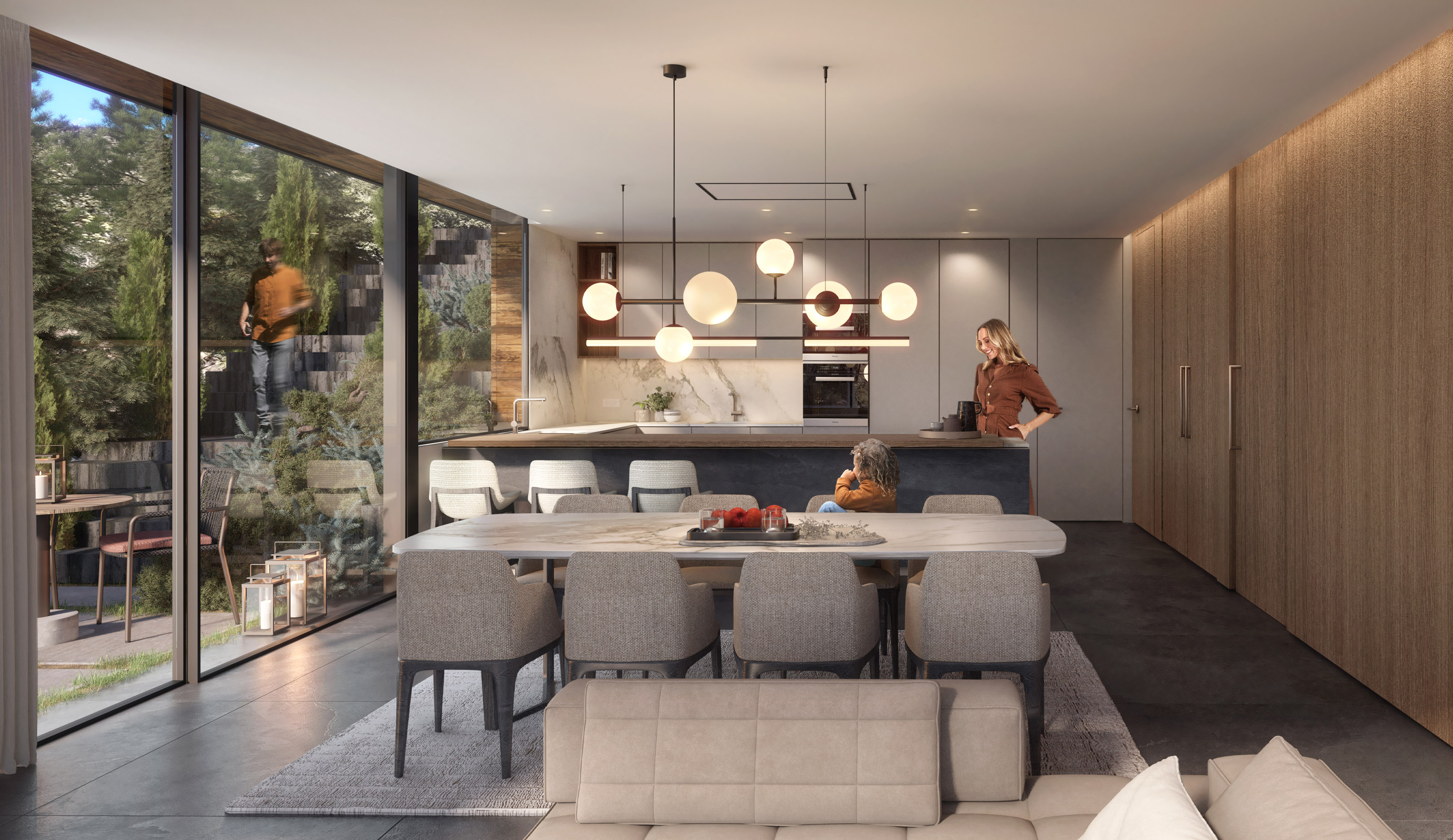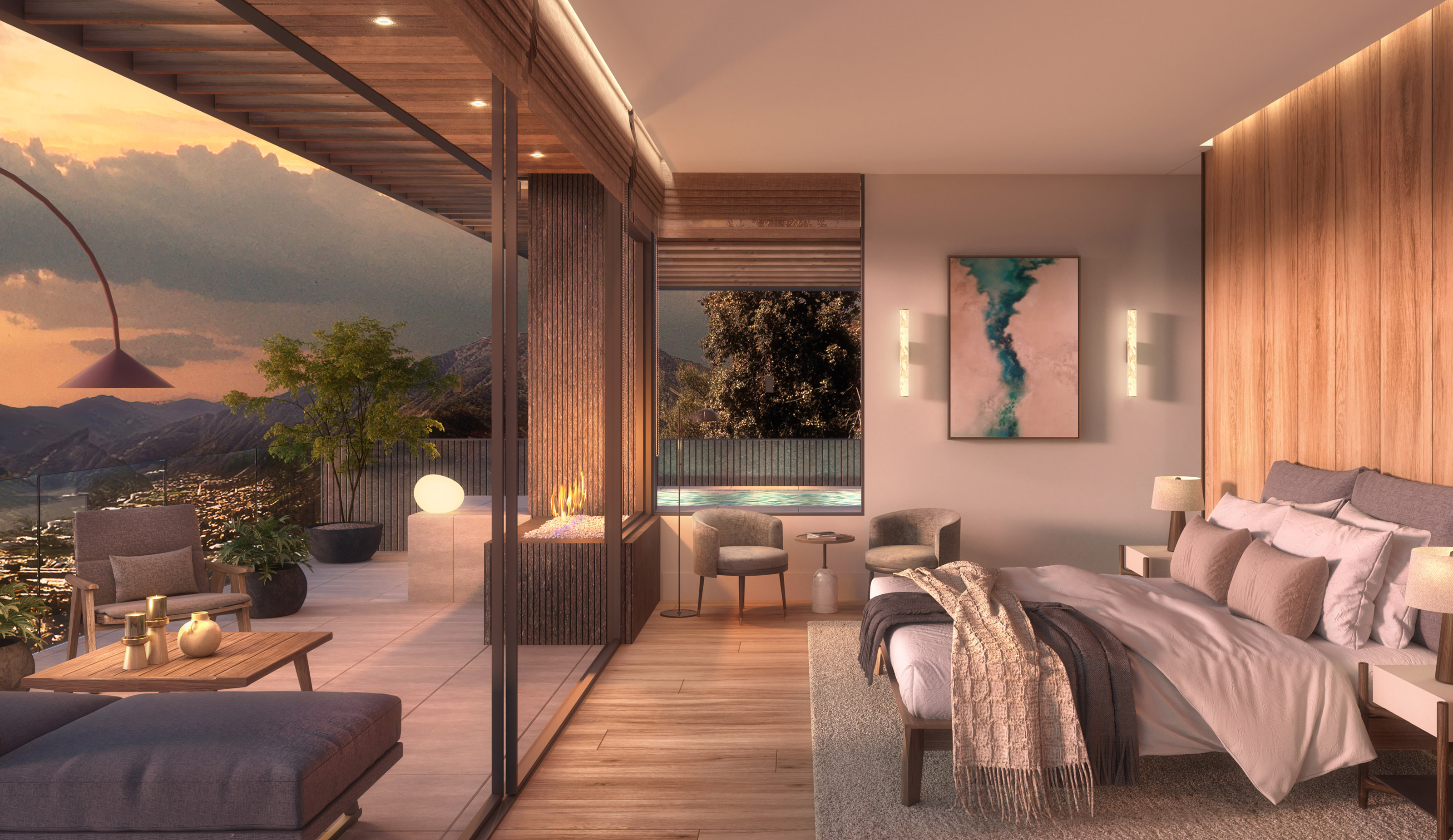 Residential project consisting of five identical residential blocks, each with varying levels of height that allow for the appreciation of panoramic views offered by the surroundings, spanning from the mountains to the city. The surrounding landscape is characterized by curved and organic forms. In contrast, the architectural design breaks away from these curves by presenting straight lines, thus becoming the focal point of the composition.